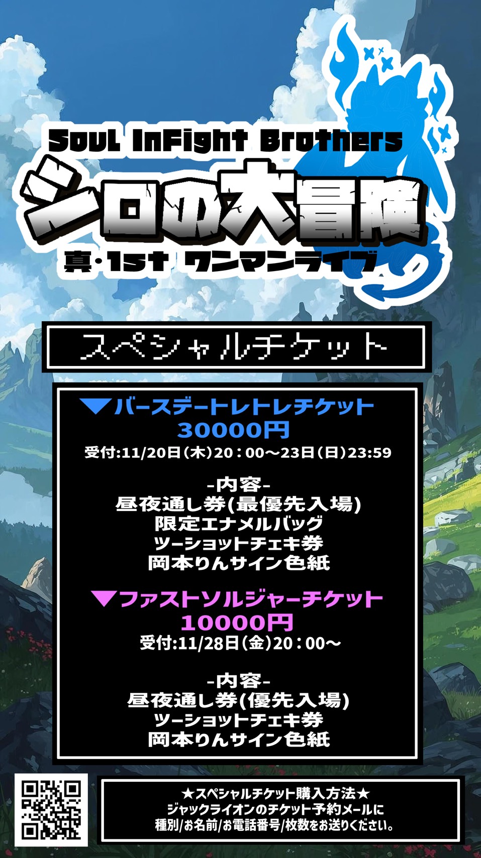 ■予約番号などをお伝えする必要があるためこのライブのチケットのご予約はジャックライオンホームページ http://jacklion.net/ 「チケット予約」よりメールでの申し込みのみとさせていただきます。